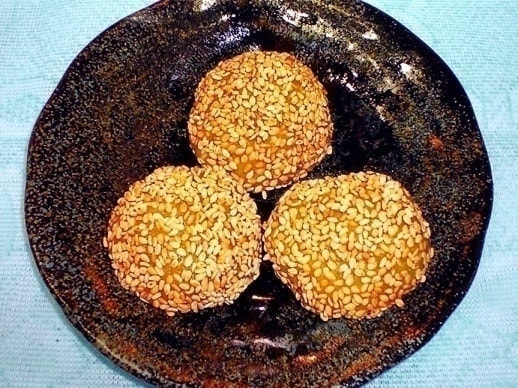手でひと口大に丸め、白ごまをまぶす。