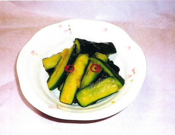 うゆ・赤唐辛子を入れ、きゅうりを加えて